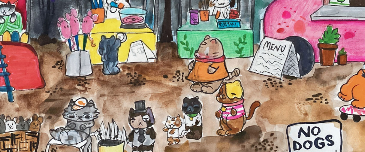 From Markers, to watercolours, and acrilic paints, I use whatever is needed to get the job done. My artistic flow takes a snapshot of the real and turns it into a story to feed your imagination.